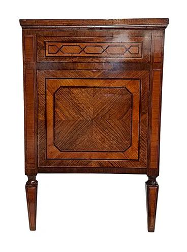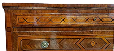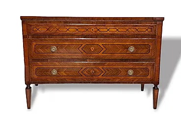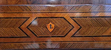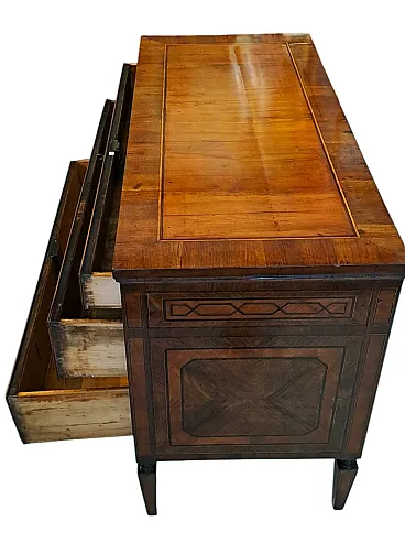 The panels of the drawers have a "fish plug" tarsia, willing to form two symmetrical arrows that meet in the center.