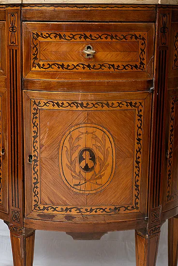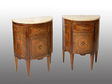 Description: Pair of ancient Credenzine Louis XVI Neapolitan in Demi Lune in fine exotic woods belonging to the second half of the eighteenth century.