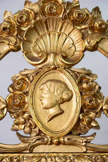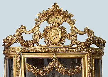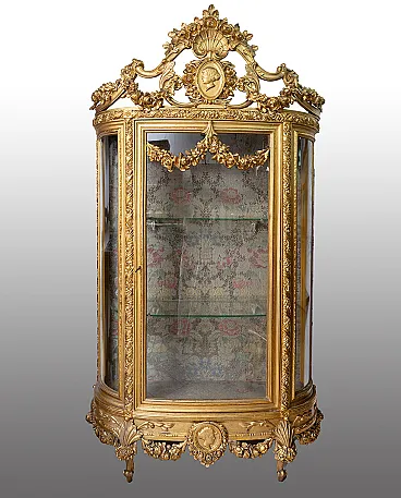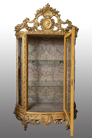 Description: Antique showcase Napoleon III French in golden and carved wood belonging to the second half of the nineteenth century.