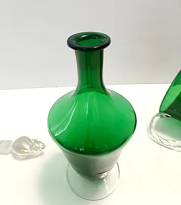Made in Italy, 1950s. Made in green and transparent hand-blown glass, in Empoli. It is a vintage set, therefore it might show slight traces of use, but it can be considered as in excellent original condition and ready to become a piece in a home. Measures: 1. diameter 12 cm height 33 cm height without caps 26 cm 2. width 16.5 cm depth 22.5 cm height 17 cm Order it now! We sell the best quality pieces and we offer an amazing service: if it's not during night time, we answer within 2 hours and we absolutely love to follow every step of the purchase and even after. As matter of fact we really appreciate our customers’ feedback and when we receive pictures of our pieces in their new homes. We assist you during the process and answer all your questions. In addition to this, we always review the pieces before shipping, so that you receive the goods at its very best. We provide the best possible quotes and professionally and carefully pack the items. Insurance is included. And if there is any issue, it is our mission to make so you don't have to worry: we will always be there for you to assist in any way possible.