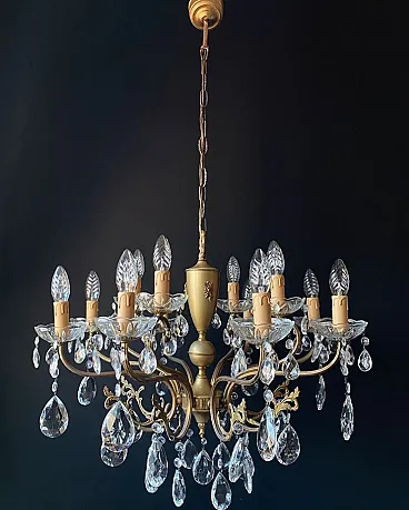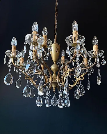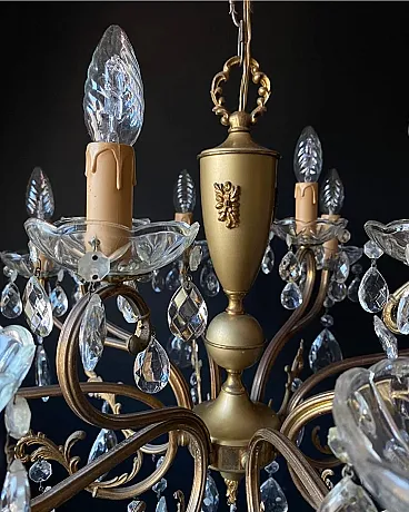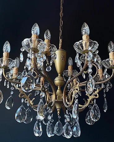Metal and glass chandelier with 8 arms and 12 lights, 1950s