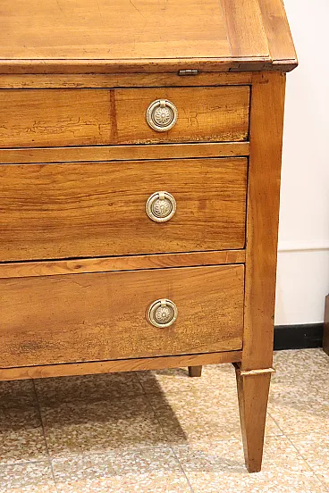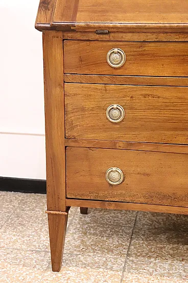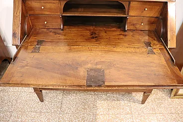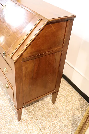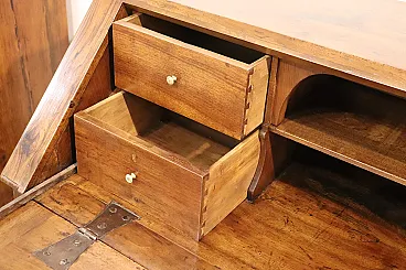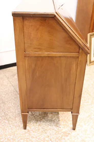 Made in precious solid walnut, its linearity perfectly reflects the taste of the time, which was looking for perfection through extreme elegance and refinement, often without excessive decorations. From a functional point of view, it has three comfortable drawers in the lower part. The upper part opens up to the limelight to reveal a perfect surface for fast writings or consult documents. Inside there are four small drawers. You can certainly think of placing this refined limelight in any room in the house and enhancing it by combining it with a nice picture or a precious mirror. Wherever you decide to place it, it will become a focal point, admired and envied by all your guests. Its elegant simplicity also makes it perfect for both classic and modern furniture.