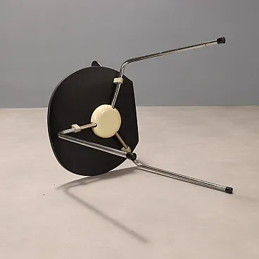 Set of five vintage chairs with chromed metal legs and black lacquered bent plywood seats. In good overall condition, they bear the manufacturer\'s mark under the seat.