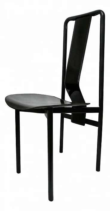 Collectible chair model Irma, original Zanotta production of 1979 based on a design by Achille Castiglioni. Black lacquered metal frame, absolute black leather. Very good condition, as per photo, leather seat with obvious signs of time and use. Seat height from the ground: 46cm.