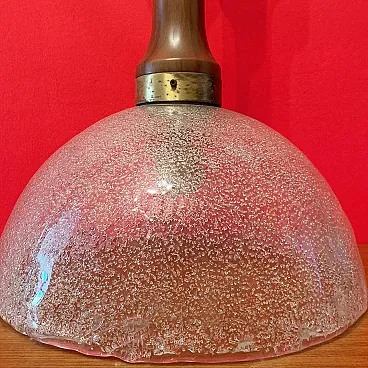 The chandelier has the Murano glass diffuser, while the structure is in wood decorated with bronze parts.
