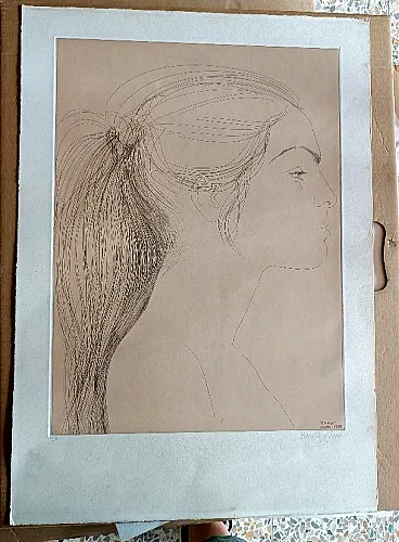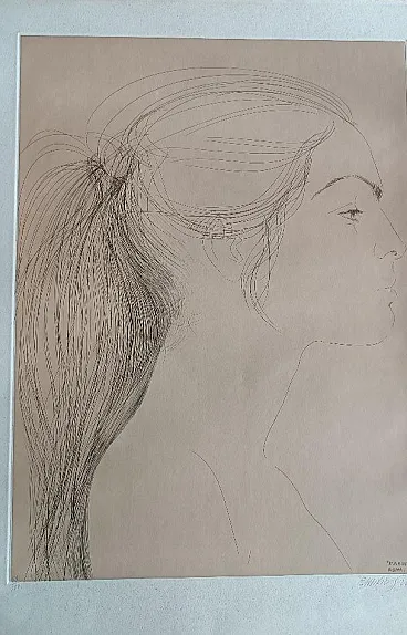 Incision on cardboard, 70 x 50 cm format, signed and numbered 56/100. Author: Emilio Gino Conti (1900–1983), Italian-American painter and sculptor born in Lucca and moved to Providence, to the United States. It is known for its artistic production linked to painting and sculpture, with works influenced by religious murals and a long career developed between Italy and America.