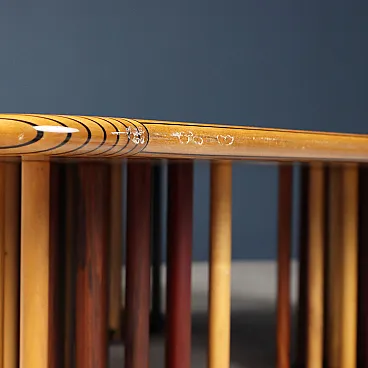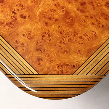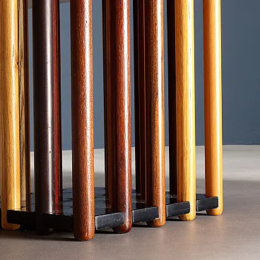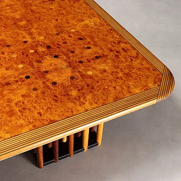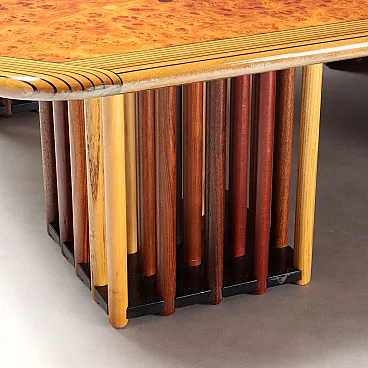 Coffee table from the Artona series designed by Afra and Tobia Scarpa for a Maxalto production in the 1970s. Square-shaped top with beveled briar veneer, legs composed of cylindrical columns made with different types of wood. In good general condition, it has light signs of aging on the edge of the top.