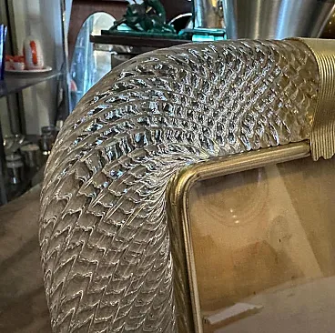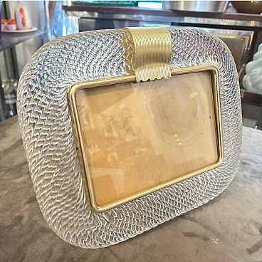 A clear murano glass picture frame designed and manufactured in Venice in the style of Barovier, the frame it's in lovely conditions. This vintage photo frame is a beautiful and elegant piece of decor that is perfect for displaying your favorite memories in style. Barovier is a renowned Italian glass-making company that has been in operation since 1295, and their products are highly valued by collectors and design enthusiasts alike. The photo frame features a rectangular shape with a solid brass clean internal frame. The outer part of the frame is made of transparent Murano glass. The glass has been carefully crafted by skilled artisans, with each piece being unique due to the nature of the glass-making process. This photo frame is a perfect example of the Art Deco style that was popular in the early 20th century, characterized by bold geometric shapes, sleek lines, and a focus on luxury and craftsmanship. The photo frame is a timeless piece that will add elegance and sophistication to any room. It's in very good condition overall.