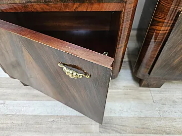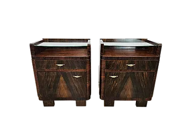 Bedside tables Art Decò in walnut root with glass top, 1940s
