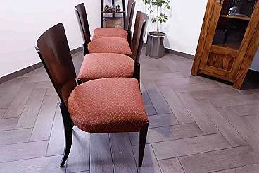An elegant set of four dining chairs, model H-214, designed by the renowned Czechoslovak designer Jindřich Halabala for the national company UP Závody Třešť. This model is commonly referred to as the “Lollipop” chair due to its distinctive rounded backrest shape — a standout piece of pre-war design.