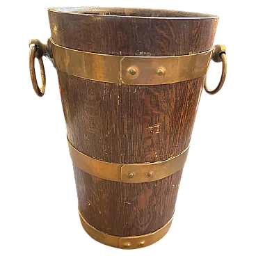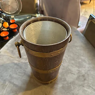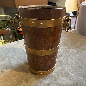 An amazing oak and copper wine cooler designed and hand-crafted in France by Geraud Lafitte in the Forties, it's in original condition with normal signs of use and age, marked on a side Geraud Lafitte " Meilleur ouvrier de france 1933 ". It exhibits characteristics of the Art Deco style popular during that era. Art Deco featured geometric shapes, bold lines, and luxurious materials. This wine cooler has a smooth, curved design, made from oak wood and accented with copper elements. The use of quality materials like oak and brass would align with the craftsmanship typical of the Art Deco period. It's a fantastic and usable barware item, the inside part is removable and makes this wine cooler very convenient to use.