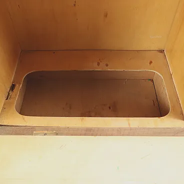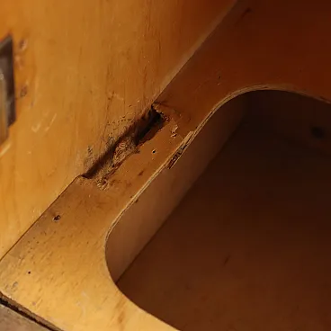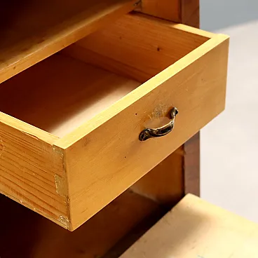 Cabinet with drop-down door and pair of hinged doors, burl veneer. Fair condition, interior in need of complete renovation.
