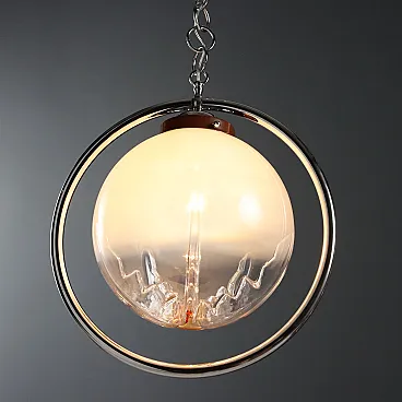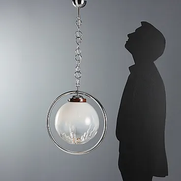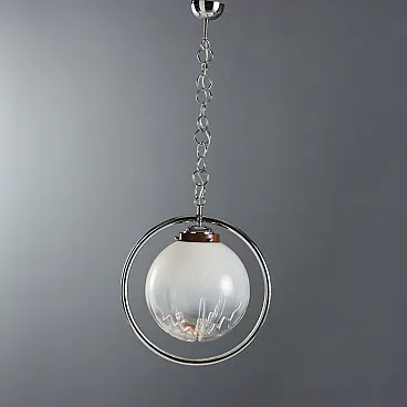 Chromed metal ceiling lamp with blown glass diffuser. E27 socket.