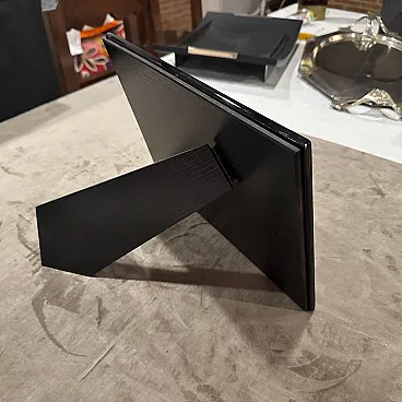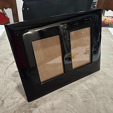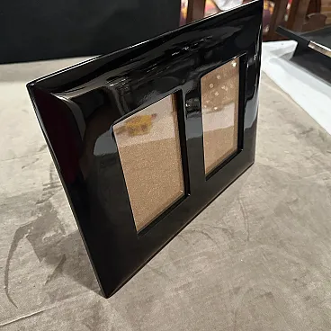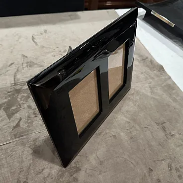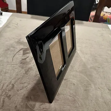 An high quality 1990s Modern Black Lacquered Wood Italian Design Double Picture Frame by Bussolari. Add a bold pop of color and sleek Italian design to your décor with this striking double picture frame by Bussolari, crafted in Italy during the 1990s. Made from high-quality lacquered wood, the frame features a high-gloss vibrant black finish that radiates contemporary style. Designed to hold two photographs, this piece combines modern minimalism with Italian craftsmanship, perfect for displaying cherished memories in a stylish way. Its sculptural, beveled edges and smooth surface reflect light beautifully, making it a standout accent on any shelf, desk, or console. Whether for your home, office, or as a unique gift, this Bussolari frame is both functional and a statement piece. It's in excellent condition, never used, it comes from a shop going out of business.