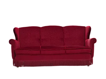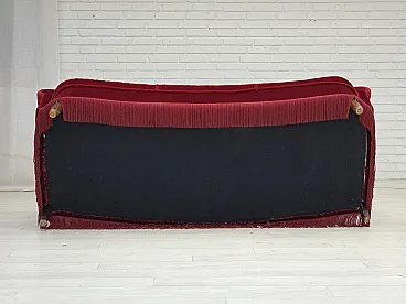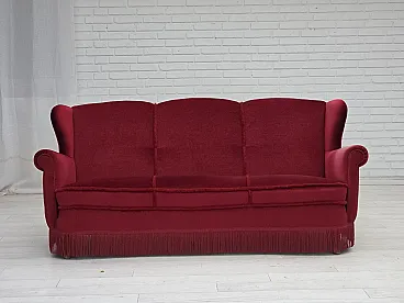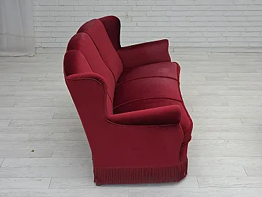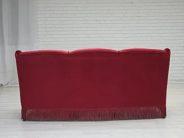 Danish 3-seater curved sofa in red furniture velour, 1960s