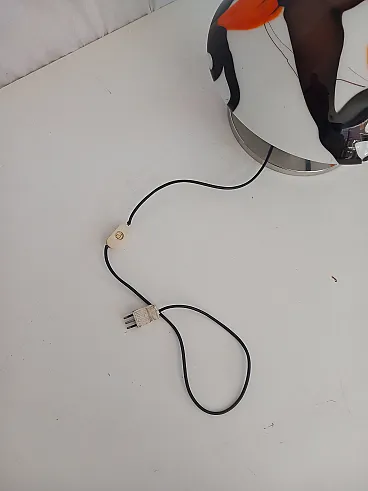 Add a touch of mid-century charm to your space with this peculiar round-shaped table lamp, designed and produced in the 1950s. A true statement piece, it features a striking combination of opal glass and metal elements, highlighting the timeless appeal of vintage craftsmanship. The lamp showcases a coloured palette of white, black, and vibrant orange, making it a bold yet elegant accent for any modern or retro-inspired interior. Its unique shape and material contrast give it a sculptural presence, perfect for desks, side tables, or reading nooks. A functional and decorative piece, this lamp is ready to light up your home with authentic 1950s flair.