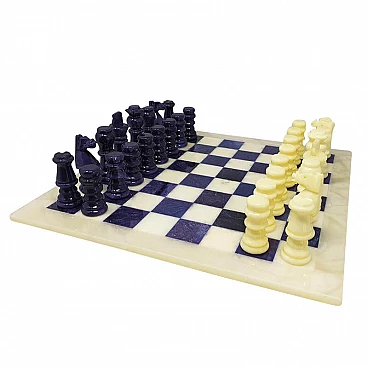 Handmade blue and beige chess set in Volterra alabaster, 70s