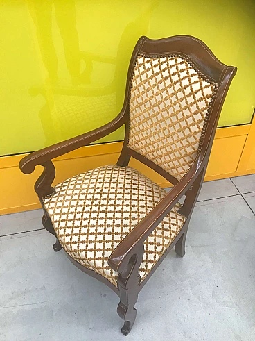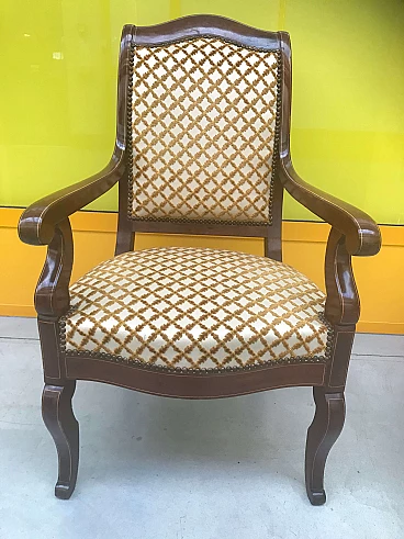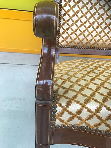 Charles X French armchair in mahogany with maple fillets, first half 19th century