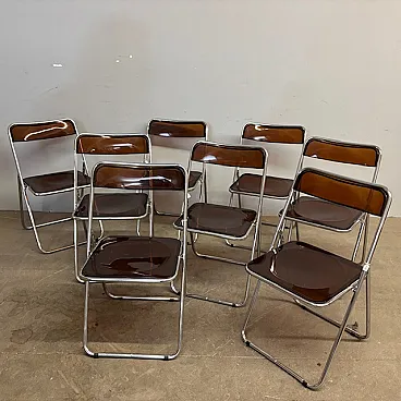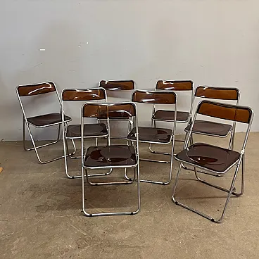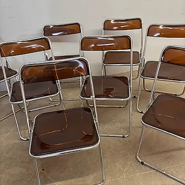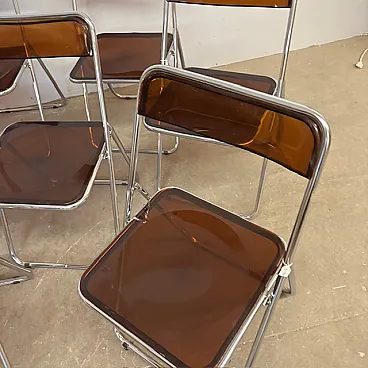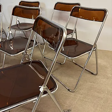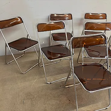 6 Folding chairs in metal and plexiglass smoked, 1960s