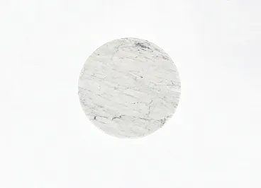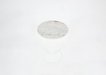 Side table with marble top and aluminum base designed by Eero Saarinen and produced by Knoll International in the 1960s. Stamped under the foot. Wear due to time and age of the table.