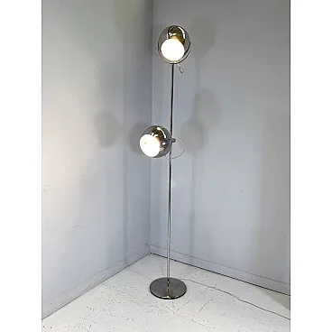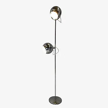 Elevate any modern interior with this Space‑Age floor lamp attributed to Goffredo Reggiani, a hallmark of 1960s Italian design. Elevate any modern interior with this Space‑Age floor lamp attributed to Goffredo Reggiani, a hallmark of 1960s Italian design. Its sleek silver-steel body culminates in an adjustable twin-rod frame supporting two spotlight-style heads, allowing you to direct light precisely where it's needed. With a commanding height of approximately 70.9″ (180 cm) and a footprint of 15.7″ × 15.7″ (40 × 40 cm), it blends industrial elegance with functional versatility—ideal for reading corners, creative studios, or minimalist living spaces. The lamp’s refined use of polished steel and articulating arms reflects Reggiani’s signature aesthetic: engineered luxury with an architectural flair. Its movable heads adapt beautifully to different moods and spatial needs, while the weighted base ensures balance and presence.