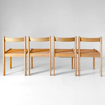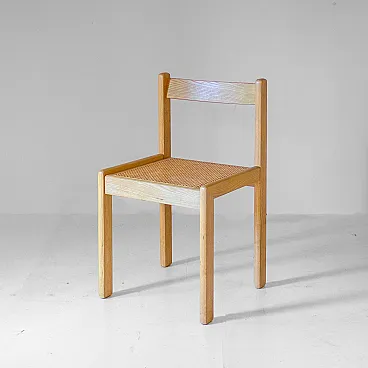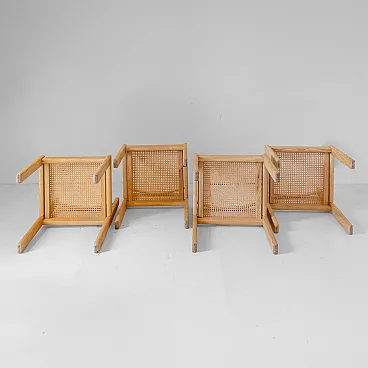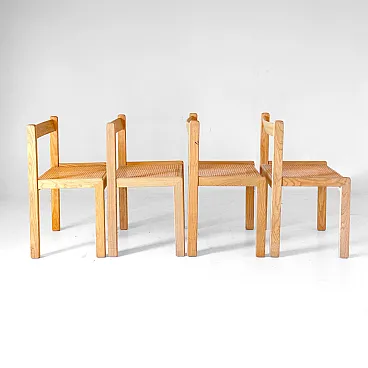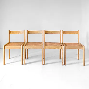 Set of four Italian oak and straw chairs of Vienna, 70s