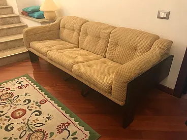 Claudio Salocchi's vintage lounge set for Sormani - 60s Elegant and rare living room set designed by Claudio Salocchi for Sormani in the 1960s, consisting of a 3 -seater sofa and two coordinated armchairs. The structures are built in fine rosewood, with clean lines and balanced proportions, typical of the Italian modernist design of the time. The sessions are covered in original ocher yellow fabric, which gives the set a vibrant chromatic note, in perfect contrast with the hot veins of the wood. Comfort and refinement meet in this whole which fully represents the aesthetic and the constructive quality of the period. A collector's piece for Italian Mid-Century's connoisseurs and lovers.