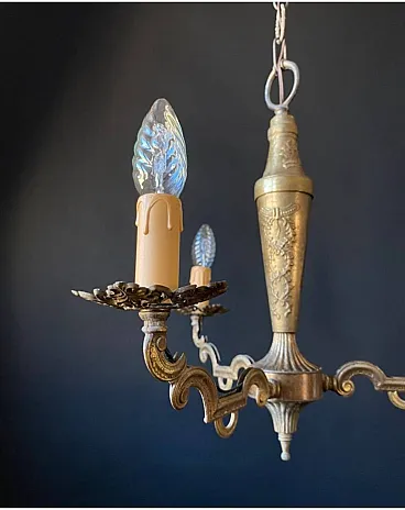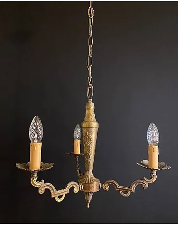 Chandelier with three lights. Wiring and cartridges are replaced with new ones. Bulb type E14.