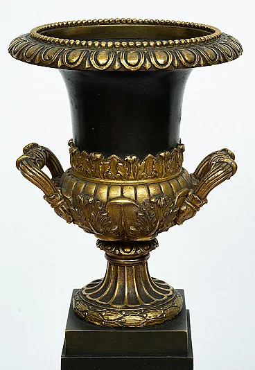 Pair of cassolette vases Carlo X in golden bronze and bronze, 19th c.