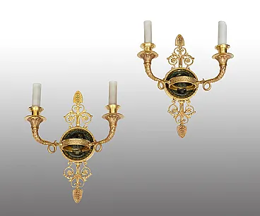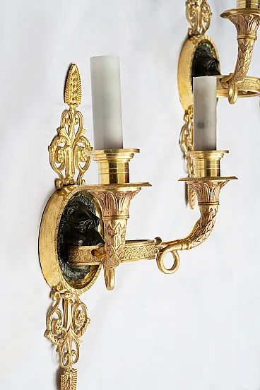 Pair of wall lights of golden and satin bronze Empire wise, 19th c.