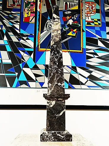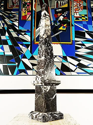 Hand carved obelisk in Black Marble from L'Aquitania, 1960s
