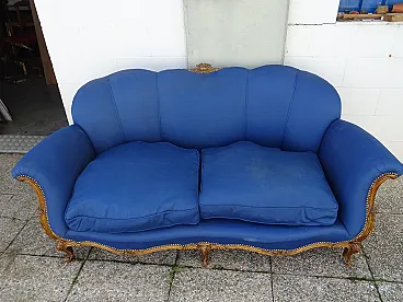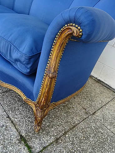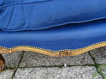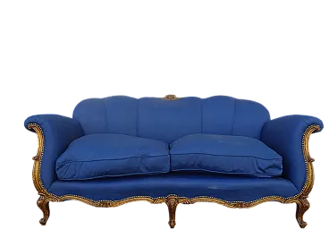 Louis XV style sofa gilded with blue padding, 20th century