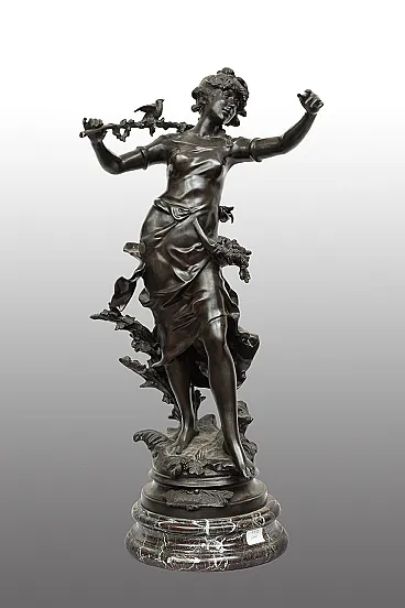 Glossy bronze sculpture Nimphe de Bois by Louis Moreau, 19th century