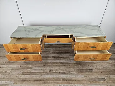 Italian chest of drawers Mid Century in maple and brass, 1950