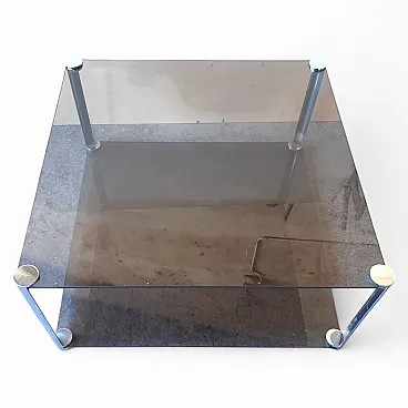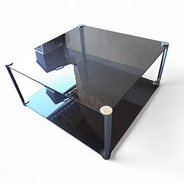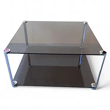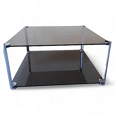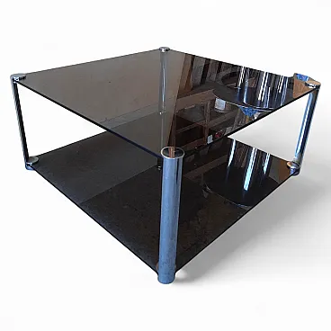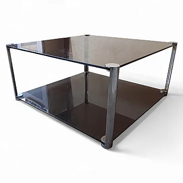 An icon of Italian design from the 60s, the "Twin" table designed by Antonio Ari Colombo for Arflex embodies the modernist elegance and the innovative functionality of the time. This piece of design history is distinguished by its two -storey smoky glass structure, supported by an essential but sophisticated chromed frame.