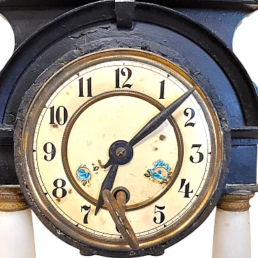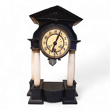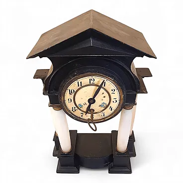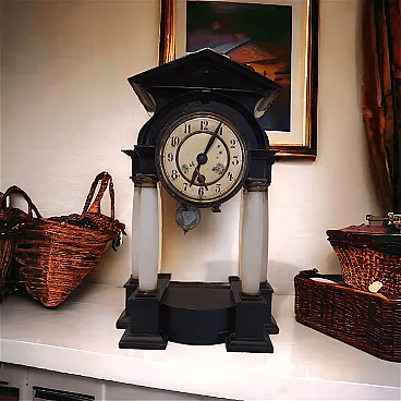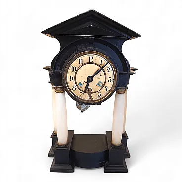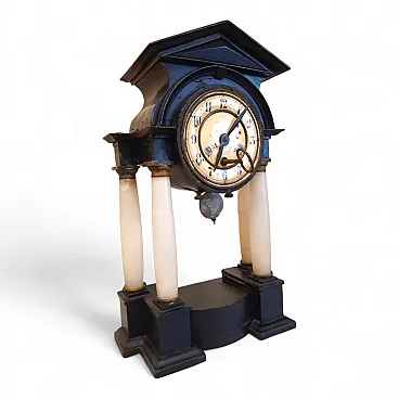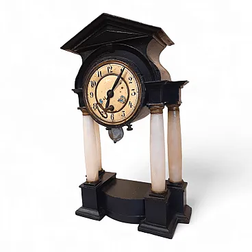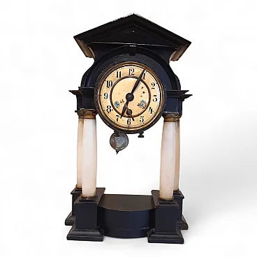 Esbanized wooden temple watch and alabaster Let yourself be kidnapped by the timeless elegance of this extraordinary temple clock. With its alabaster ebanized wood and the delicate nativeper -pearl decorations, this architectural masterpiece enchants for its natural beauty and its timeless charm. The majestic columns and the details add a touch of luxury and prestige, transforming this watch into an authentic work of art. Add a touch of class and refinement to your home or space with this temple clock, destined to become the fulcrum of any conversation and object of admiration. Characteristics Era: early 1800s Style: Napoleonic Empire style Material: Esbanized wood, alabaster, mother of pearl Features: majestic columns, mother of pearl decorations Conditions: discrete, with signs of wear due to age Dimensions: Height: 50 cm Depth: 13 cm Width: 32 cm Weight: 5 kg Origin: Austria