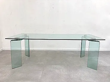 A striking minimalist dining table made entirely from glass, designed to add lightness and elegance to any interior. The clear tempered glass construction gives the table a refined and modern look while maintaining strength and stability. Its clean, architectural lines make it an ideal centerpiece for contemporary dining rooms, meeting spaces, or stylish offices.