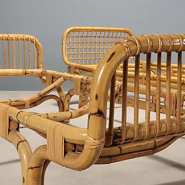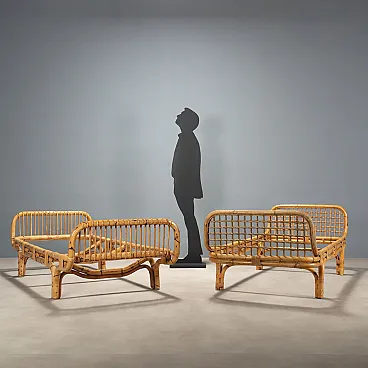 Pair of single beds in bamboo and wicker, 1970s