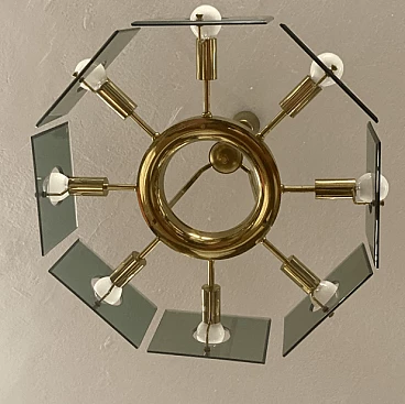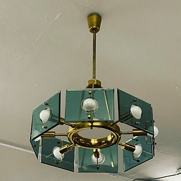 Brass and glass italian chandelier by Gino Paroldo for Dino Dei, 50s