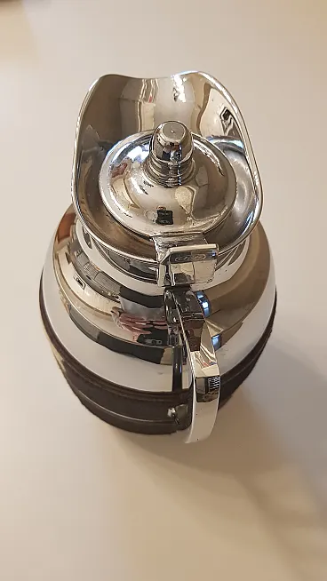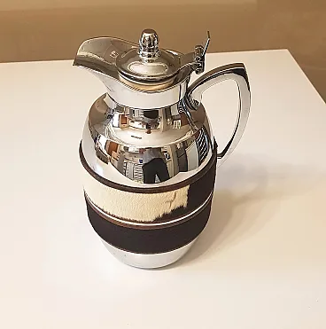 The Alfi 1 lt 1 lt thermal carafe is made of stainless steel, finished in leather, and has a double wall insulation that maintains the hot content up to 12 hours and cold up to 24 hours
