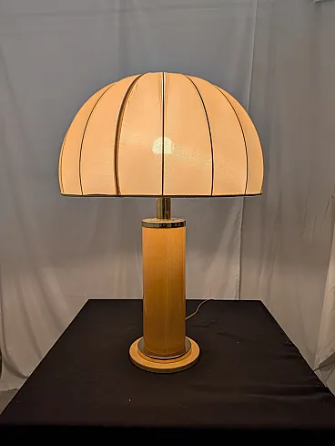 A refined high -end ture table lamp, an authentic piece of Italian design renowned for artisan excellence and luxurious aesthetic. The original label on the basis confirms its origin from the famous designer Aldo Tura, known for the use of impeccable exotic materials and finishes.