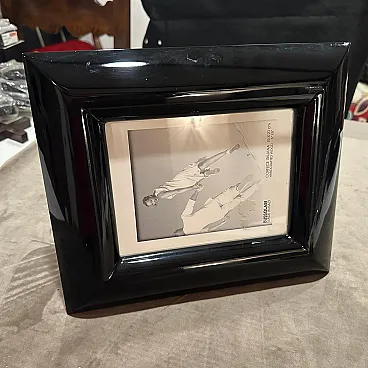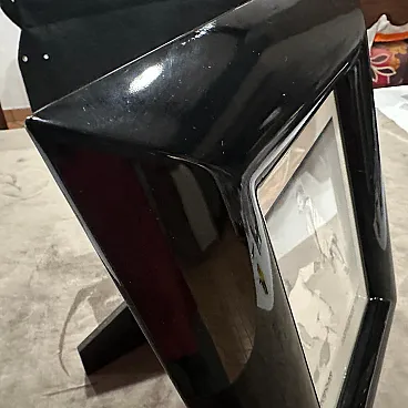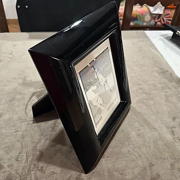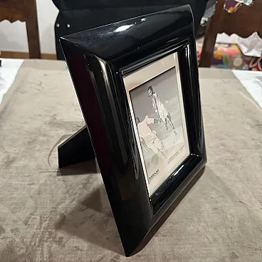 Vintage 1990s Bussolari Italian Picture Frame This is a beautiful and authentic vintage picture frame from the 1990s, designed and crafted by the Italian brand Bussolari. Made in Italy, this piece is a wonderful example of the era's minimalist and modern aesthetic. The frame features a unique profile, with a sleek, gently tapered edge that gives it a dynamic and sculptural feel. Its high-gloss black lacquered wood finish is both elegant and versatile, making it a perfect accent for any decor style, from classic to contemporary, the back includes a built-in stand for easy display on a desk, shelf, or mantle. Whether you're showcasing a family photo, a piece of art, or a cherished memory, this Bussolari frame will add a touch of timeless European style to your home. It's in perfect condition