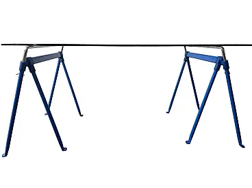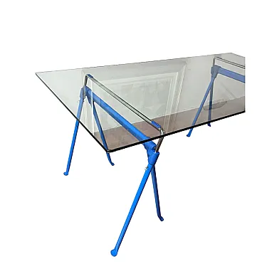 Ypsilon table with rectangular glass top and trestle base, 1980s