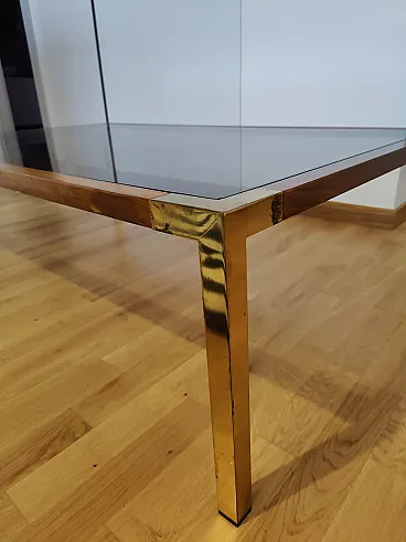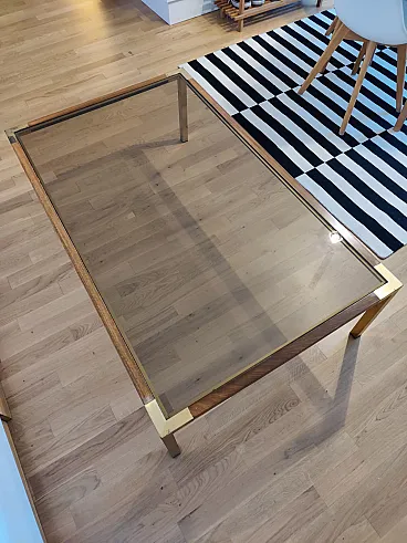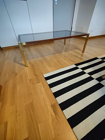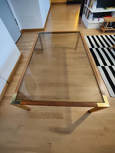 70s living room table. Brass, root and glass. Good general conditions. Dimensions 130x80x40