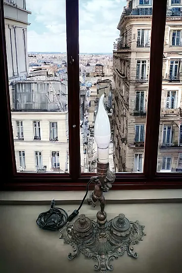 This inkwell lamp is more than a decorative object; it is a true statement piece. Placed on a desk, table, or cabinet, it brings an atmosphere of elegance and sophistication. The built-in lamp emits a warm, welcoming light, ideal for illuminating work or reading areas, while the putto and bronze decorations capture the attention of anyone entering the room.