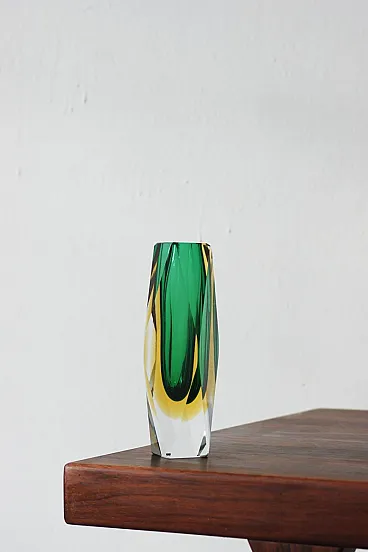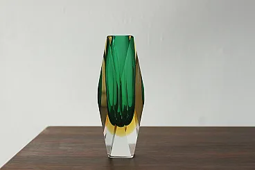Faceted submerged vase in green and amber glass, 1960s