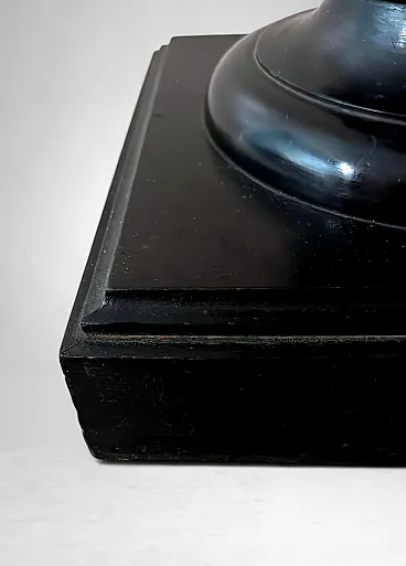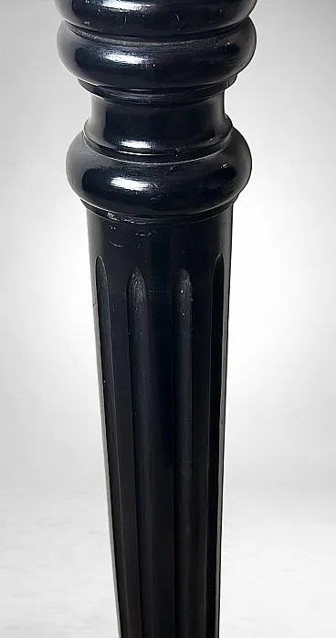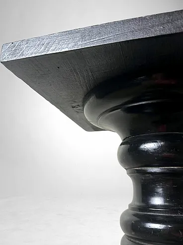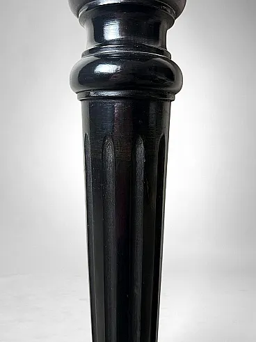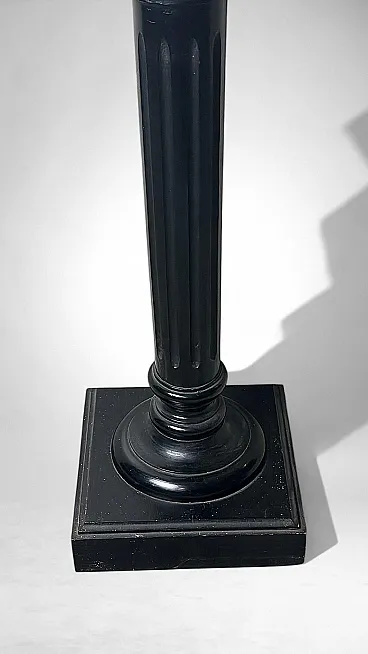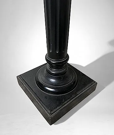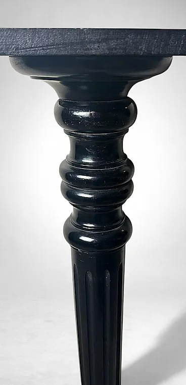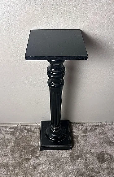 Elegant French pedestal in ebonized walnut, featuring a finely turned column resting on a square base, with a matching square top. A piece of refined simplicity and timeless appeal, its strong yet harmonious lines highlight its sophisticated character. The technique of ebonization was particularly popular in France during the second half of the 19th century, as it gave furniture a modern and elegant appearance. It resonated with the taste for contrasts and the pursuit of refinement characteristic of the Aesthetic Movement, as well as of related styles such as the Neo-Renaissance and the reinterpreted Neoclassical. The turned shaft, enriched with fluted and sculptural details, recalls a simplified interpretation of classical columns, reimagined with a more restrained decorative language. The production of such pedestals flourished in Paris and in other major French cities of the late 19th century, where workshops of skilled cabinetmakers created versatile furnishings intended to display busts, sculptures, vases, or objets d’art. Although not attributable to a single designer, its aesthetic reflects the widespread models associated with the work of French architects and decorators of the era, such as Charles Garnier, as well as the master cabinetmakers active between the late Second Empire and the Belle Époque. This pedestal is extremely versatile: ideal as a stand for classical busts or sculptures, it harmonizes beautifully with works in marble, bronze, or terracotta. In a contemporary setting, it can serve as a sculptural support for a design vase or an artistic installation. Its understated elegance allows it to integrate seamlessly into Neoclassical, eclectic, or modern interiors, where it can become a striking focal point. The piece is in good condition. Dimensions:Width 30 cm (11.8 in) Depth 30 cm (11.8 in) Height 101 cm (39.8 in)