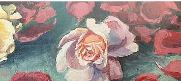Still life, oil painting of pink flowers, 20th century