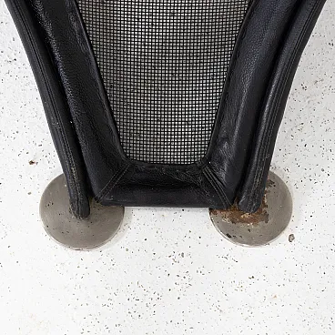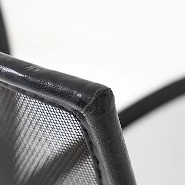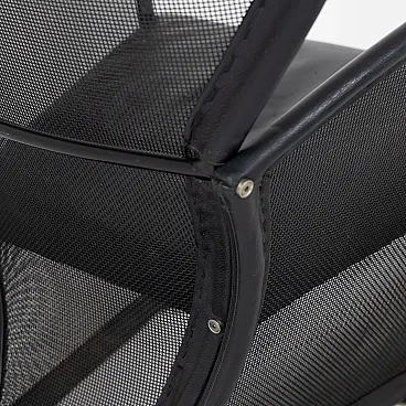 The armchairs of the Privé series, made of metal mesh, have a steel structure covered in carbon metal fabric. The seat and elastic edges are finished in black leather.