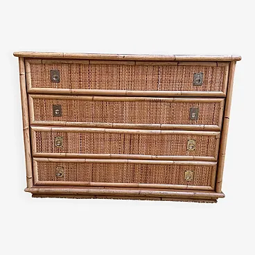 Dal Vera bamboo and rattan chest of drawers, 1970s